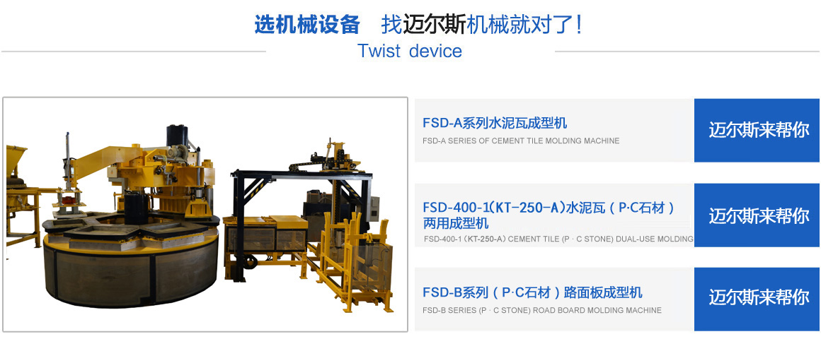 常熟市邁爾斯機械有限公司是一家集研發(fā)、生產(chǎn)、銷售于一體的建材機械高科技企業(yè),其前身為2011年注冊創(chuàng)辦的“常熟市虞山鎮(zhèn)豐順達機械配件廠”,經(jīng)過多年的努力,于2017年注冊成立“常熟市邁爾斯機械有限公司”,專業(yè)生產(chǎn)模壓水泥彩瓦機、P.C石材機、轉(zhuǎn)盤式成型機、彩色路面磚機等綠色建材設備。公司以市場為龍頭,以技術為導向,開發(fā)了系列化、標準化的適銷對路的機械產(chǎn)品,并且注冊了多項國家專利技術,銷售范圍覆蓋全國,并且出口越南、老撾等東南亞和其它國家。