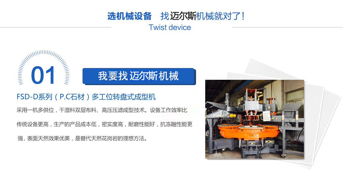 公司最初以生產(chǎn)320型、400型、500型、650型單工位模壓磚、瓦機為主,于2014年開發(fā)出了三工位轉(zhuǎn)盤機,而六工位轉(zhuǎn)盤機的研發(fā)成功,則是2017年,同年在大連客戶那里正式投入生產(chǎn)... |